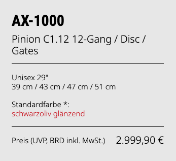 Dort wo die Bikes unserer TX- oder GX-Serie an ihre Offroad-Grenzen kommen, ergänzt die besonders robuste, geländegängige AX-Serie sinnvoll unser Portfolio hochwertiger Reise- und BikePacking-Räder. Dank des extrem wartungsarmen Antriebskonzepts mit Pinion Getriebe und Gates Carbon Drive Riemen sowie einem hochwertigen Reynolds Rohrsatz aus England sind diese Bikes langlebige und zuverlässige Begleiter.